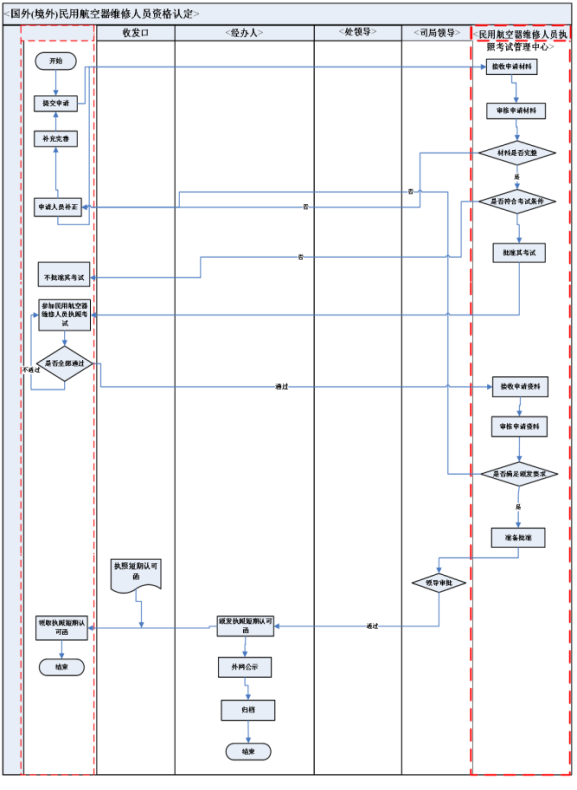 民用航空器维修人员执照考试管理中心向外国发证当局核对执照信息,组织评估考试。
