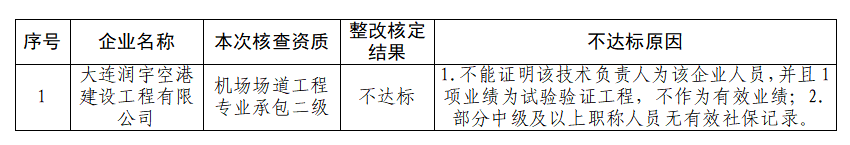| 名 称:关于大连润宇空港建设工程有限公司等1家资质企业追加动态核查核定意见的公示 | |