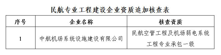 | 名 称:关于追加中航机场系统设施建设有限公司等1家企业进行资质核查的通知 | |