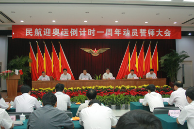 民航总局召开迎奥运倒计时一周年动员誓师大会