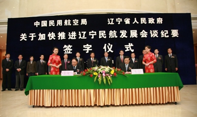 3月31日,民航局与辽宁省人民政府在沈阳签署了《关于加快推进辽宁民航发展会谈纪要》,共同加快推动“十二五”时期辽宁民航跨越式发展,更好地为国家振兴东北老工业基地战略的实施和辽宁沿海经济带开发开放作出贡献。民航局局长李家祥,辽宁省省委书记王珉、省长陈政高、省委副书记陈希、副省长刘国强,民航局各相关司局和民航东北地区管理局有关领导出席签字仪式。李家祥和陈政高分别代表双方在会谈纪要上签字。