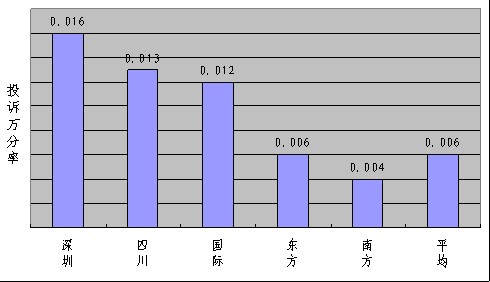本月25家航空公司中有5家航空公司发生了有效投诉,航空公司平均投诉率为万分之零点零零六。