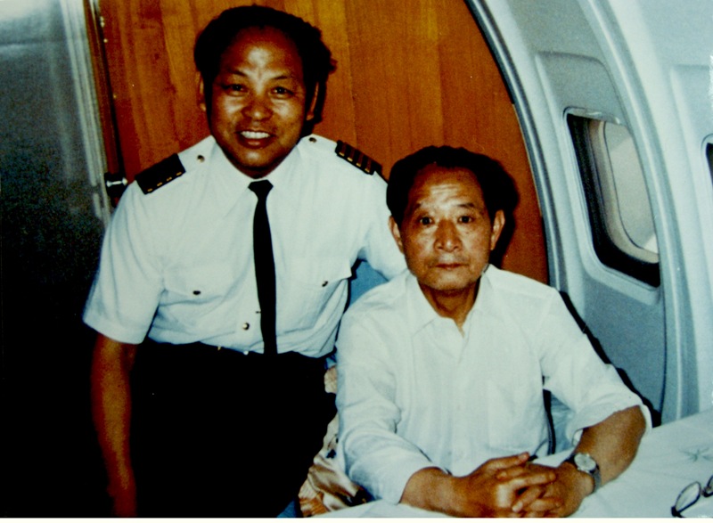 1986年6月,时任中共中央总书记胡耀邦访问英国、德国、法国、意大利,在专机上同徐柏龄合影