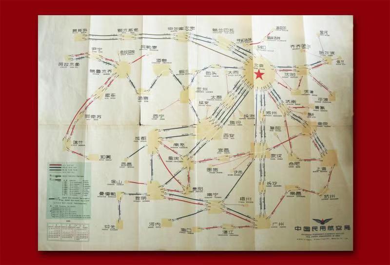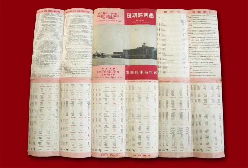 民航局颁布的自1959年1月1日起实行的航线图、班期时刻表及客货运价表(实物)