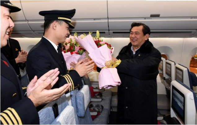 Feng Zhenglin welcomed flights of Air China, Sichuan Airlines, China Eastern Airlines, China Southern Airlines and Hainan Airlines, and expressed holiday greetings to the flight crew.