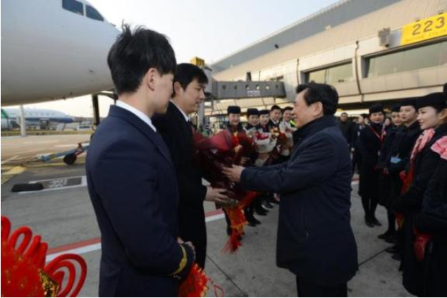 Feng Zhenglin Greets Crew Members of Air China
