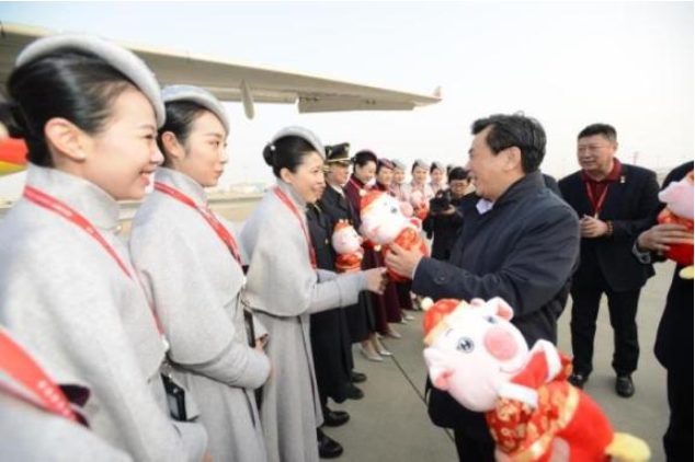 Feng Zhenglin Greets Crew Members of Hainan Airlines
