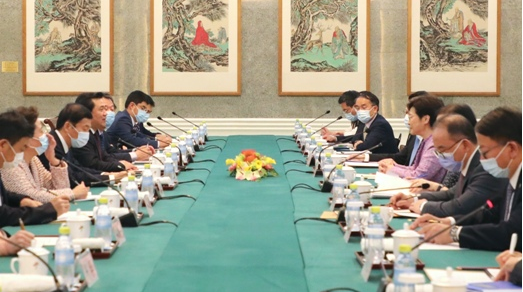 CAAC Administrator Feng Zhenglin meets with Chief Executive of Hong Kong SAR Carrie Lam and her associates in Beijing.