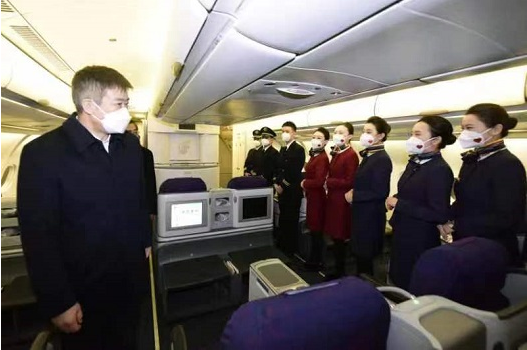 Song Zhiyong extends greetings to the flight crew of Hainan Airlines.