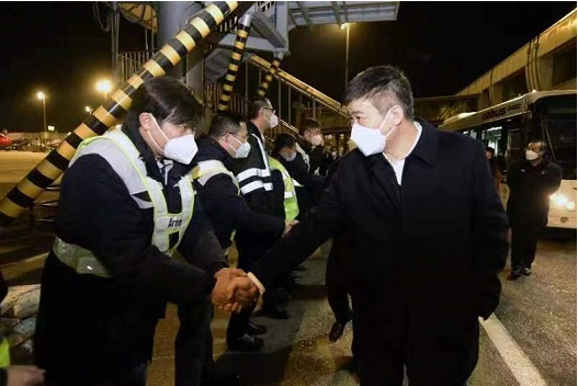 On the evening of December 31, 2022, at Beijing Capital International Airport, Song Zhiyong, Administrator of CAAC, in company with Hu Zhenjiang, Deputy Administrator of CAAC, greets with crew members who have safely completed flights on the last day of 2022 and extended his regards to the front-line staff who stuck to posts.