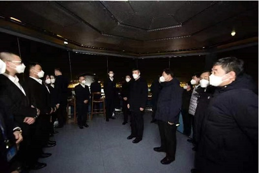 Song Zhiyong gives regards to the air traffic controllers who are on-duty in the west tower of CAAC North China Regional Administration.