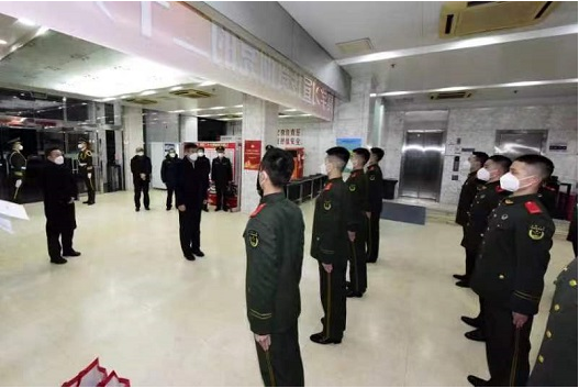 Song Zhiyong extends greetings to the armed police officers who are on-duty at Beijing Capital International Airport.
