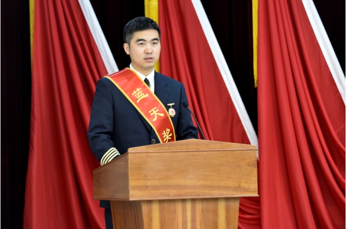 At the conference, the commendation decision was read out and the awards were presented, with the Blue Sky Certificate being conferred to 27 entities and 48 teams. 75 persons were honored with the Blue Sky Medal. Wang Yuhan, the captain of the First Squadron of Air China Flight Department and the recipient of the Blue Sky Medal, read the initiative.