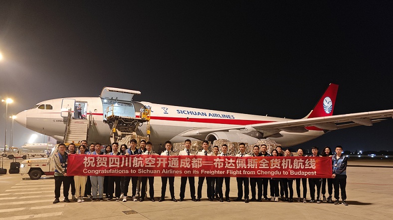 4月16日,滿載55噸貨物的川航全貨機航班從成都雙流國際機場啟航,順利落地匈牙利布達佩斯國際機場,標誌著川航“雙流=布達佩斯”定期貨運航線正式開航。