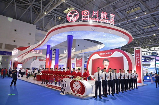 在此次西洽會川航展廳,觀眾全方位了解了川航品牌發展歷程及“金熊貓俱樂部”旗下的産品體系。川航“金熊貓俱樂部”于2001年創建,多年來致力於為旅客提供“吃、住、行、遊、購、娛”航空出行全流程服務體驗。依託川航航空運輸主業優勢,已形成“金熊貓”差旅管家、物業、地面運輸、商業薈、文創、航機餐、電商等産業形態和産品體系。展會現場,來自川航乘務、飛行、機務等崗位員工代表的精彩演出,贏得了觀眾陣陣掌聲。