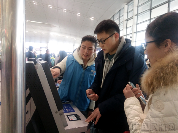 上崗4個小時,黃駿清一人負責三台自助值機,不時就會過來一波又一波旅客操著各種方言問各類問題,小黃居然都能應對如流。“為了做好這次志願服務,我不但準備了好多‘硬體’,還特意找地服和旅檢的同事要來了一些旅客常見問題,至於方言嘛,哈哈,當然也是提前有意識地關注了一下”,他笑著説。或許是安檢員的職業習慣,機敏的黃駿清眼觀六路、耳聽八方,不僅關注眼前的旅客還能時刻鋪捉到附近旅客的需求。好不容易眼前旅客提問停下來了,他注意到不遠處兩位老人看著值機櫃檯一副茫然的表情。黃駿清趕緊上前去詢問是不是需要幫助,老大爺説女兒給買了去北京的飛機票,但是他們不知道在哪辦理手續。小黃問是哪個航班,兩位老人説不知道,又問是哪個航空公司,兩位老人還是搖搖頭,時間、航班都搞不清楚,只有一個目的地資訊,小黃想了想,問他們要了身份證去櫃檯刷了一下,終於找到了航班資訊,順利幫忙辦好票送到安檢。