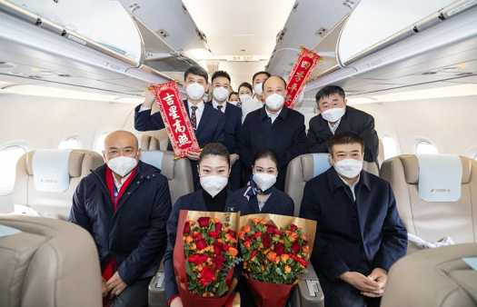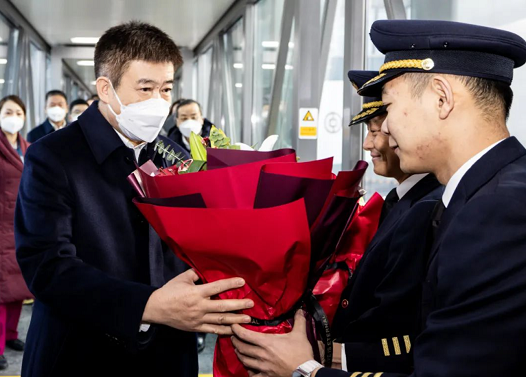 宋志勇先後慰問了南航和東航機組人員,走進機艙與他們一一握手,獻上鮮花,並與大家合影留念。“新春快樂!大家辛苦了!給你們拜年!”宋志勇對他們過去一年的努力工作表示衷心感謝,對他們春節期間堅守工作崗位表示敬意。他表示,2022年是很不平凡的一年,全行業嚴格按照黨中央要求,認真落實“疫情要防住、經濟要穩住、發展要安全”要求,攻堅克難,團結奉獻,各項工作取得了一定成績,穩住了行業發展基本盤。新的一年,全行業要完整準確全面學習貫徹黨的二十大精神,堅決落實黨的二十大作出的戰略部署,深入學習貫徹習近平總書記對民航工作特別是對民航安全工作的重要指示批示精神,不折不扣抓好落實,牢牢守住航空安全底線,加快建設世界一流企業,聚焦“三新一高”,以實際行動推動行業高品質發展。他親切地詢問機長“飛了多少年?”詢問乘務長“今天客人多不多?”還勉勵大家不斷進步,再接再厲,爭取新的一年取得新的進步。機組成員備受鼓舞:“請局長放心,我們一定努力飛好每一個航班,確保人民群眾出行安全。