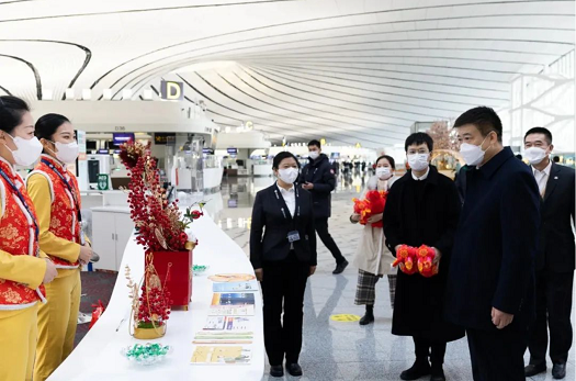 宋志勇還慰問了機場安檢、機場大使以及武警、公安等單位工作人員,感謝為民航安全發展的辛勤付出,並祝大家身體健康、工作順利、家庭幸福、兔年大吉。親切的話語、溫暖的問候,廣大民航職工倍感溫暖,紛紛表示將繼續鉚足幹勁、擔當作為,一如既往做好本職工作,為高品質推進交通強國民航篇章建設貢獻力量。