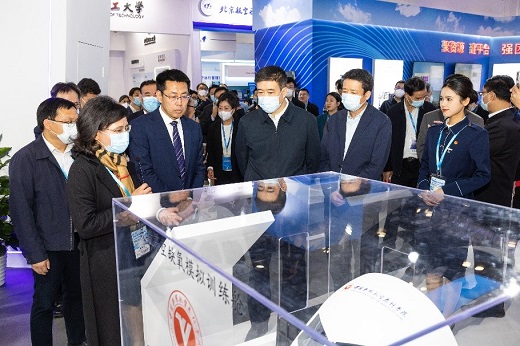 宋志勇先後來到展廳連廊、序廳及航科院、民航二所、管幹院、民航大學、北理工、北航、中飛院、中國電科、空管局、國航、首都機場、上海機場、東航、南航、中國航信、中兵智航、菜鳥、同方威視等單位展臺,詳細了解民航科技教育創新成果,認真聽取相關彙報,近距離觀看、體驗了內容豐富、形式多樣的創新成果展示。