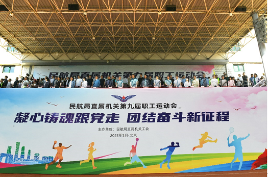 5月13日,以“凝心鑄魂跟黨走 團結奮鬥新征程”為主題的民航局直屬機關第九屆職工運動會在京舉行。來自民航局機關和局屬相關單位的30支代表隊、近800名職工參加。民航局局長宋志勇宣佈運動會開幕,民航局副局長崔曉峰、韓鈞,柳芳同志出席運動會開幕式併為獲獎運動員頒獎。