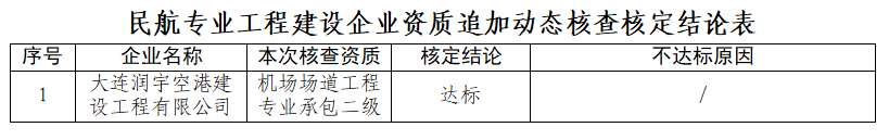 | 名 稱:關於公佈大連潤宇空港建設工程有限公司等1家資質企業追加核定結論的通知 | |