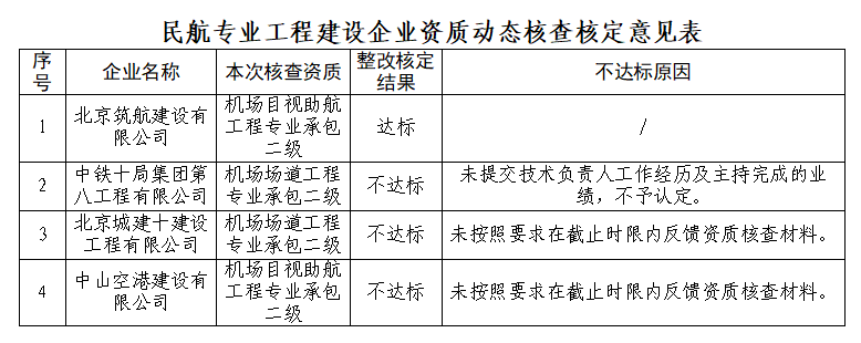 根據《關於開展2023年度民航專業工程建築業企業資質動態核查的通知》《關於開展2024年度民航專業工程建築業企業資質動態核查的通知》,機場司組織工作專班,依據相關法規和資質標準,對部分追加企業的自查材料及異議材料進行研究核定,形成本次核定意見,現進行公示。公示時間為2026年4月17日至4月23日。