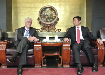 4月23日,民航局副局長李健在北京會見了來華參加北京航空安全國際論壇的國際民航組織秘書長雷蒙·邦雅曼。李健感謝國際民航組織以及雷蒙·邦雅曼本人長期以來對中國民航發展給予的支援和幫助。雙方還就未來中國民航局和國際民航組織的合作事宜交換了意見。