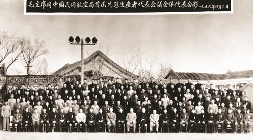 1956年4月2日,民航局首屆先進生産者代表大會在北京召開。出席會議的有從全國各民航單位推選出的126名先進生産者,其中包括2名“革新型”飛機改裝人員。與會代表交流了安全生産等方面的工作經驗。當日,毛澤東、劉少奇、周恩來、鄧小平、彭真等中央領導同志親切接見與會全體代表併合影留念。