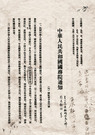 1954年11月10日,國務院印發關於機構設置的通知,其直屬機構設置中包括“中國民用航空局”