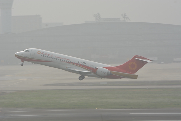 圖為2016年6月28日,ARJ21-700飛機從成都雙流機場起飛,正式投入航線運營