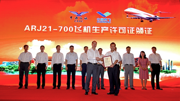 2017年7月9日,ARJ21-700飛機生産許可證頒證儀式