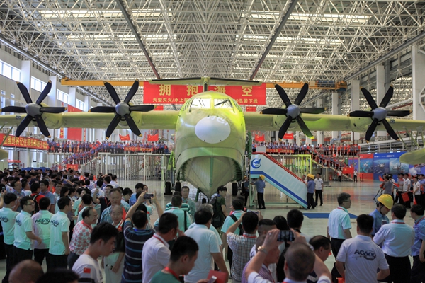 圖為2016年7月23日,大型滅火,水上救援水陸兩棲飛機 AG600 在珠海總裝下線