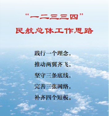 2016年,新一屆民航局黨組梳理民航發展特點和規律,分析面臨的矛盾和問題,運用改革創新思維,科學謀劃民航改革發展,形成了“一二三三四”的總體工作思路,即踐行一個理念、推動兩翼齊飛、堅守三條底線、完善三張網路、補齊四個短板(即牢固樹立“發展為了人民”的理念,推動運輸航空與通用航空協調發展,堅守“飛行安全、廉政安全、真情服務”三條底線,構建機場網、航線網、運作監控網“三張網路”,補齊空域資源、適航審定能力、服務品質、應急處置能力“四個短板”)。為確保這一工作思路落到實處,民航局黨組出臺了《關於進一步深化民航改革工作的意見》,逐步形成了“1+10+N”總體改革框架,使之成為新時代深化民航改革的戰略指引和行動指南。