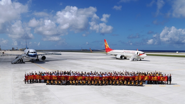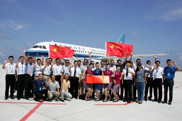 2016年1月6日,中國政府徵用的兩架民航客機先後從海口美蘭機場起飛,于10時21分、10時46分平穩降落南沙永暑礁新建機場並於當日下午返回海口,試飛成功。