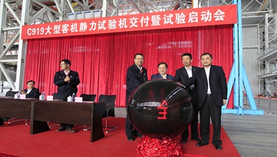 4月11日,C919大型客機全機靜力試驗機(01架機)交付暨試驗啟動會在中國飛機強度研究所上海分部召開,標誌著C919大型客機靜力試驗正式啟動。中國商飛公司黨委書記、董事長金壯龍,總經理賀東風,中航工業集團副總經理李本正,中國民航上海航空器適航審定中心主任顧新等領導出席了啟動會。