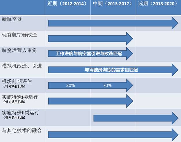 (3)確定關鍵機場的實施計劃,提出達標時間表,確保使用HUD的航空運營人在獲得 運作資格批准後得以順利實施運作。