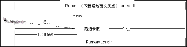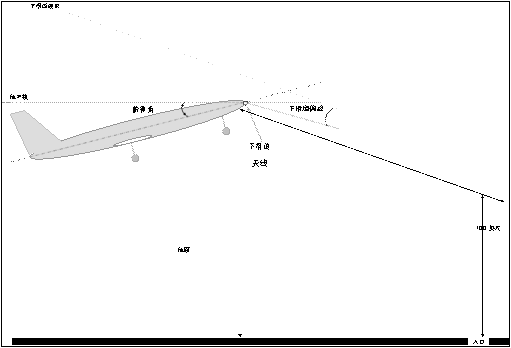 主起落架至下滑道發射器的距離的計算是基於輪轂高度、下滑道偏差、HCP參考下滑道、 俯仰姿態、以及下滑道天線相對於主起落架的幾何關係。