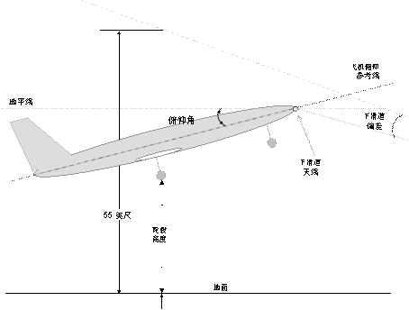 伸的偏差。對於大多數飛機,這種逐漸化過程導致在僅低於100英尺AGL(比地面高)處就 完全把下滑道偏差從垂直引導計算中去消除。