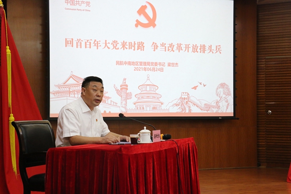 梁世傑強調,百年黨史波瀾壯闊,百年初心歷久彌新,中南局全體黨員幹部要從黨史中汲取智慧和力量,不斷砥礪初心與恒心,為中南民航“十四五”時期高品質發展和多領域民航強國建設做出更多貢獻。