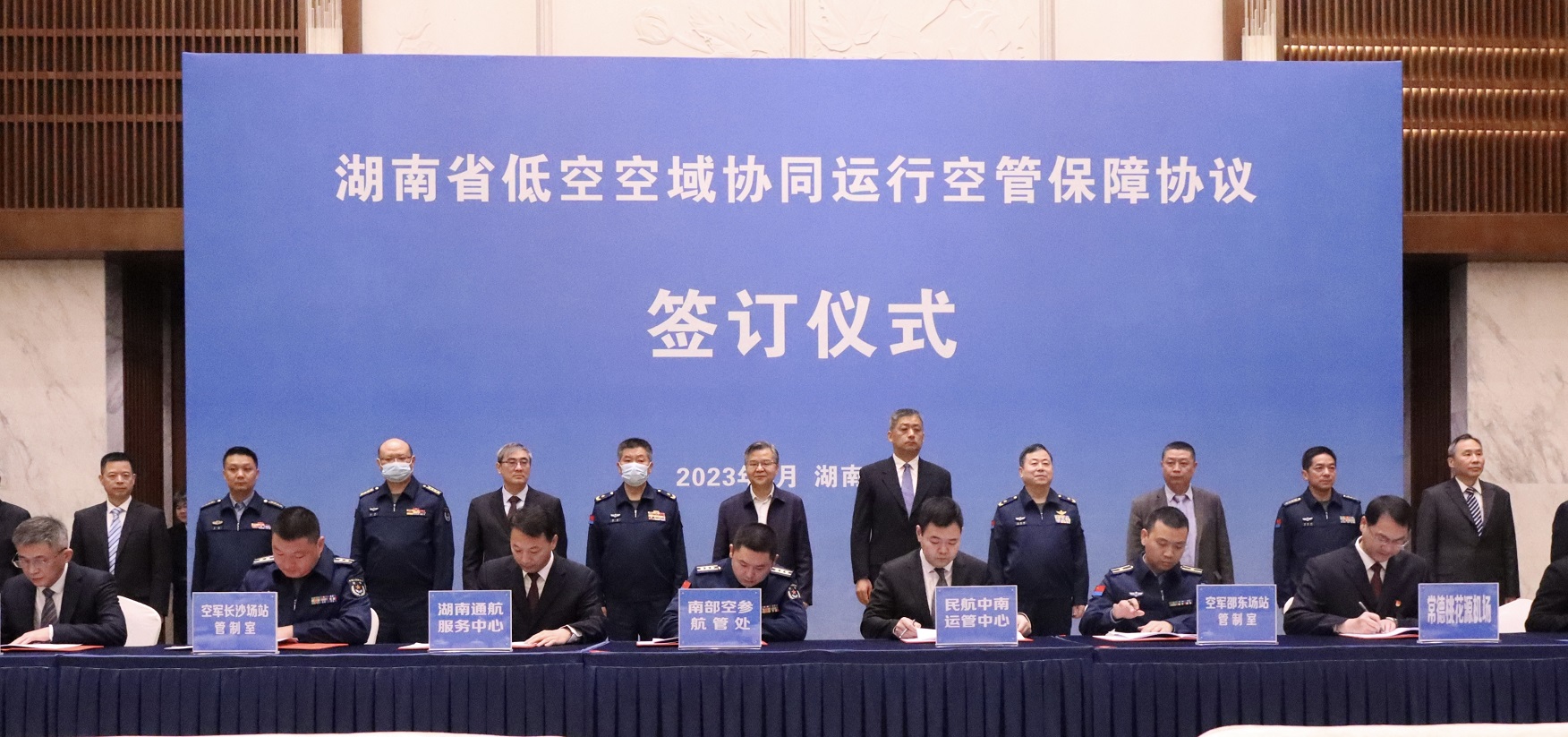 3月27日,《湖南省低空空域協同運作空管保障協議》簽約儀式在長沙舉行,民航局總飛行師萬向東,民航中南地區管理局局長馬兵出席儀式。本次協議的簽署,標誌著湖南全域協同運作真正實現,湖南省全域低空空域管理改革取得圓滿成功,這對湖南乃至全國的低空空域管理改革都具有劃時代意義。