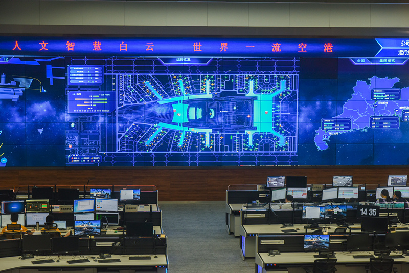 此刻的白雲機場AOC(運作控制中心)——這個航班運作調控的指揮中樞、也被稱為“最強大腦”,裏面的工作人員在緊張地忙碌著,一個個指令從這裡暫態發出,都為了一個目標——通過系統的最佳調配,“抓間隙、搶航班”,確保這個日均航班量已達1300班的大型樞紐機場更準點運作。